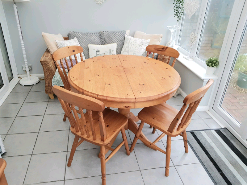 Pine extending dining table and chairs | in Braintree ... from i.ebayimg.com The ceramic top is a natural stone colour and designed to provide you and your guests a cool dining solution. Romeo 1.25m extending dining table & 4 cross back chairs. Benchwright round pedestal extending dining table. Florence extending table and 6 chairs set. Hatton round dark wood and glass dining table with 4 bewley slate fabric chairs. Luxury, rustic, farmhouse & vintage styles. Stafford reclaimed wood extending dining table. Settle down for family meals and dinner parties with a dining table from our collection.